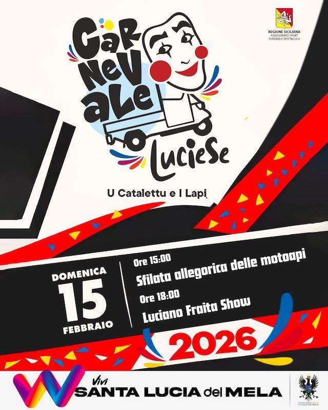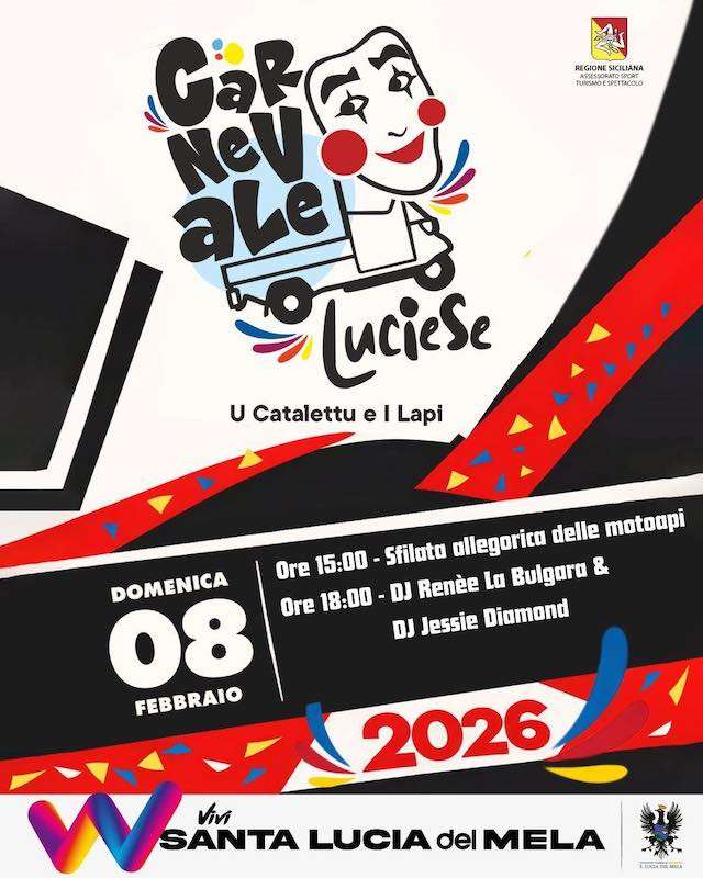 L’appuntamento con “U calettu – Il carnevale storico di Santa Lucia del Mela” è con le sfilate, lo sposalizio, la musica e i balli. Durante i giorni del Carnevale di Santa Lucia del Mela non mancheranno gli appuntamenti con i sapori tipici locali e la sagre dei maccheroni e a quella dei dolci tipici della festa, come le chiacchiere, la pignolata e naturalmente le fraviole, la musica in piazza e le sfilate delle motoape, per l’occasione trasformate in carri allegorici e partecipanti al concorso “La lapa più bella”.