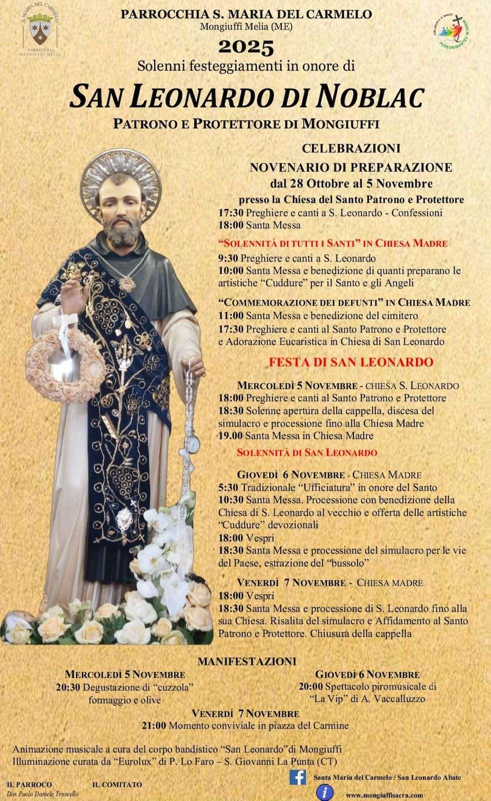 Programma 2025 Festa di San Leonardo di Mongiuffi Melia