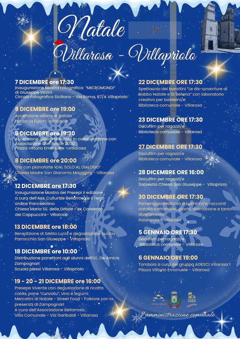 La Settimana Santa di Villarosa è un evento di profonda partecipazione religiosa, che culmina nel Venerdì Santo con la processione del Cristo alla Colonna, la Crocifissione al Calvario e la Deposizione. I riti coinvolgono l’intera comunità e attraversano i luoghi simbolici del paese, in particolare i Quattro canti, dove si conclude la celebrazione con il commovente incontro di Pasqua tra il Cristo Risorto e la Madonna.