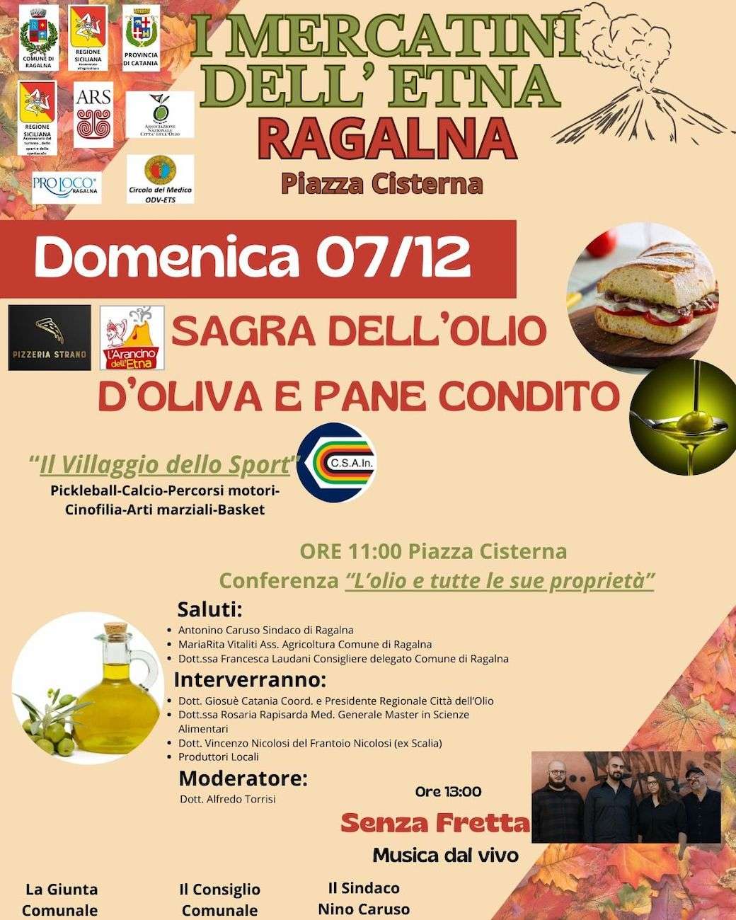 L’Autunno Ragalnese andrà in scena dal 26 ottobre e tutte le domeniche di novembre, per concludersi il 7 dicembre. Gli ospiti saranno allietati con la musica, le degustazioni, la festa dell’albero e tanto altro. Nell’ambito dell’Autunno Ragalnese, domenica 10 novembre si svolgerà la Sagra della Salsiccia e Caliceddi, e a dicembre ritorna la tradizionale Sagra dell’olio d’oliva. Sarà dunque l’occasione per trascorrere una piacevole domenica all’insegna del buon gusto, della qualità, della genuinità e dei sapori del territorio rigorosamente a Km Zero. Gli stand saranno allestiti in Piazza Cisterna, visitabili dalle ore 10,00.