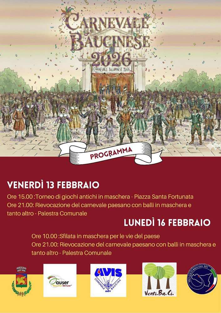 Il carnevale di Baucina si svolge con la tradizionale sfilata in costume per le vie del paese e le serate in maschera.