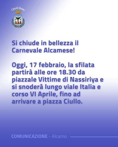 Il Carnevale Alcamese 2026 è in programma dal 14 al 17 febbraio.