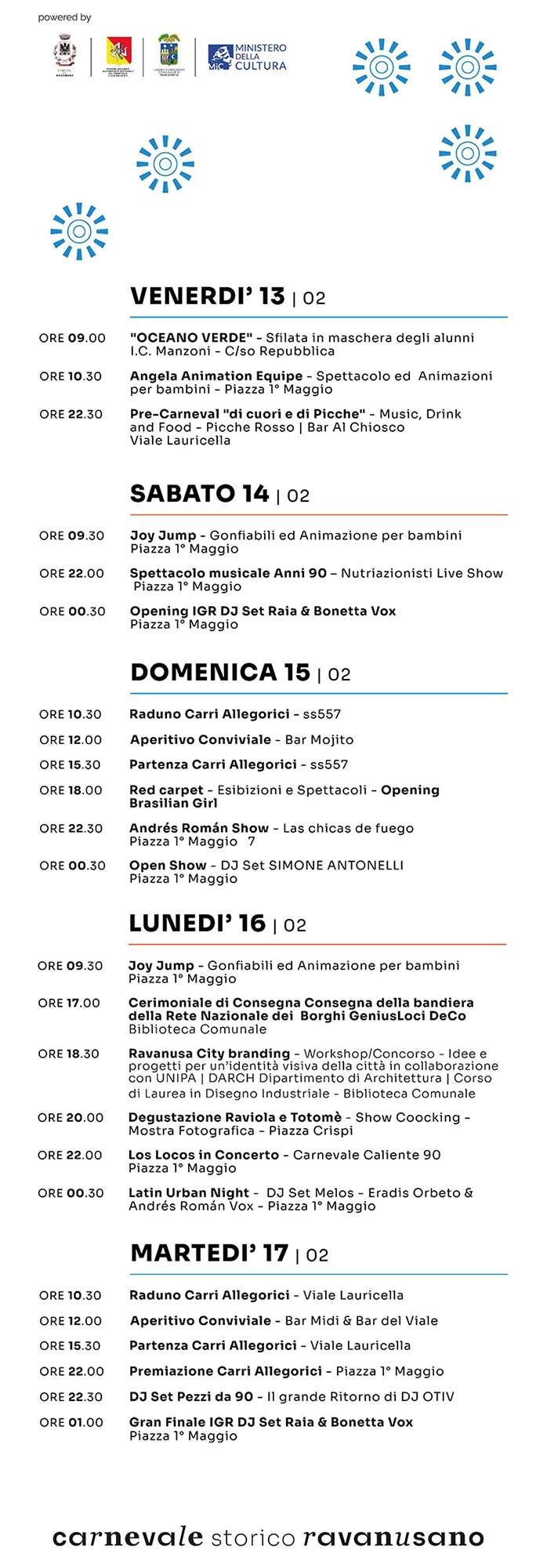 Il Carnevale Ravanusano 2026 è in programma dal 13 al 17 febbraio.