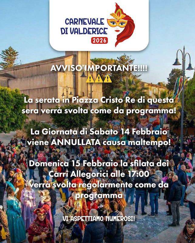 Il carnevale di Valderice 2026 è in programma dall’8 al 16 febbraio.