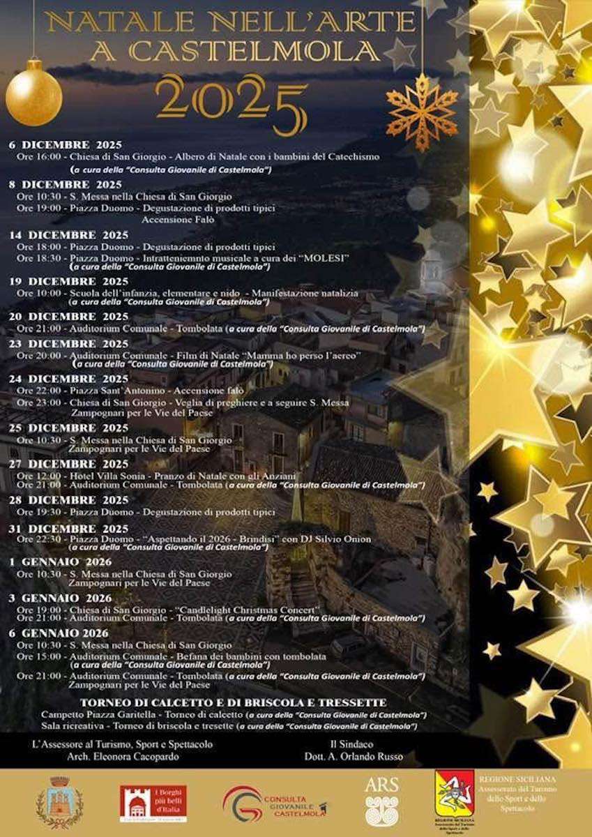 Nei giorni di Natale Castelmola accoglie i visitatori con la degustazione di prodotti tipici natalizi e con i variopinti presepi allestiti lungo le viuzze e realizzati dalla popolazione locale con i materiali più disparati, come stoffa, frutta, legno e polistirolo.