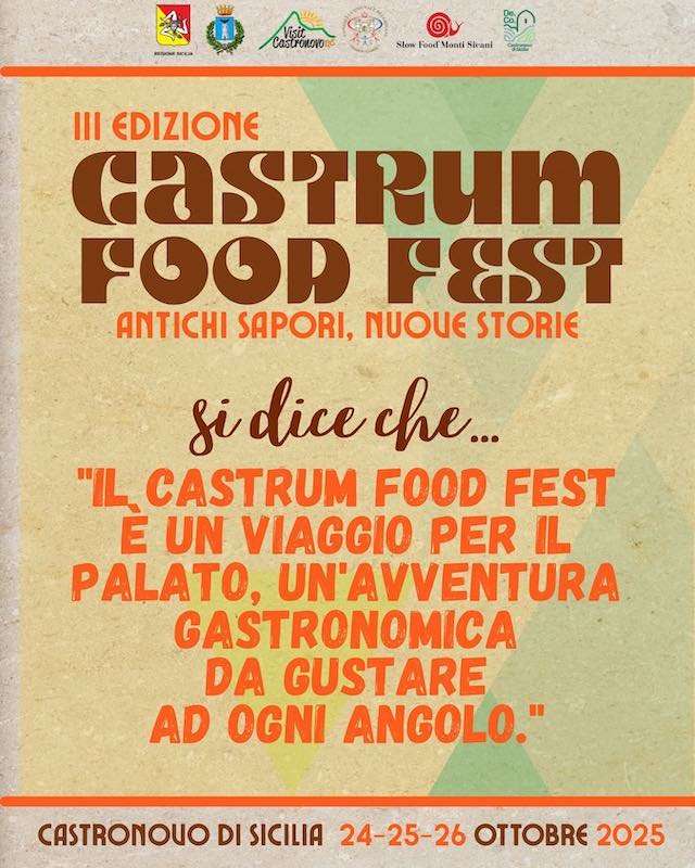 Il festival avrà un ricco programma che spazierà dagli stand gastronomici, dove sarà possibile acquistare i tanti prodotti locali, alle degustazioni delle pietanze tipiche, giochi, musica e tanto intrattenimento. Il Castrum Food Fest, quindi, non è solo un’occasione per degustare, ma anche per vivere e scoprire la ricchezza e l’ospitalità di Castronovo di Sicilia.