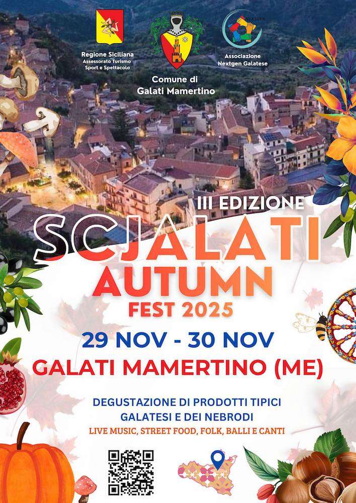 Nel pittoresco paese di Galati Mamertino, che sorge tra i monti dei Nebrodi, si svolge l’evento Scjalati Autumn Fest dedicato a celebrare i prodotti tipici e la ricca tradizione gastronomica del territorio. Gli ospiti che si avventureranno tra gli stand appositamente allestiti per la sagra avranno l’opportunità di scoprire le ricchezze che l’autunno riserva in questa zona facente parte del Parco dei Nebrodi. Sarà un viaggio sensoriale, tra gli aromi e le tonalità autunnali, alla scoperta dei prodotti stagionali del territorio. Quello che va in scena a Galati Mamertino sarà un weekend all’insegna del divertimento, dove i visitatori avranno l’opportunità di deliziarsi con le specialità tipiche del territorio, godendo di un clima di festa e convivialità.