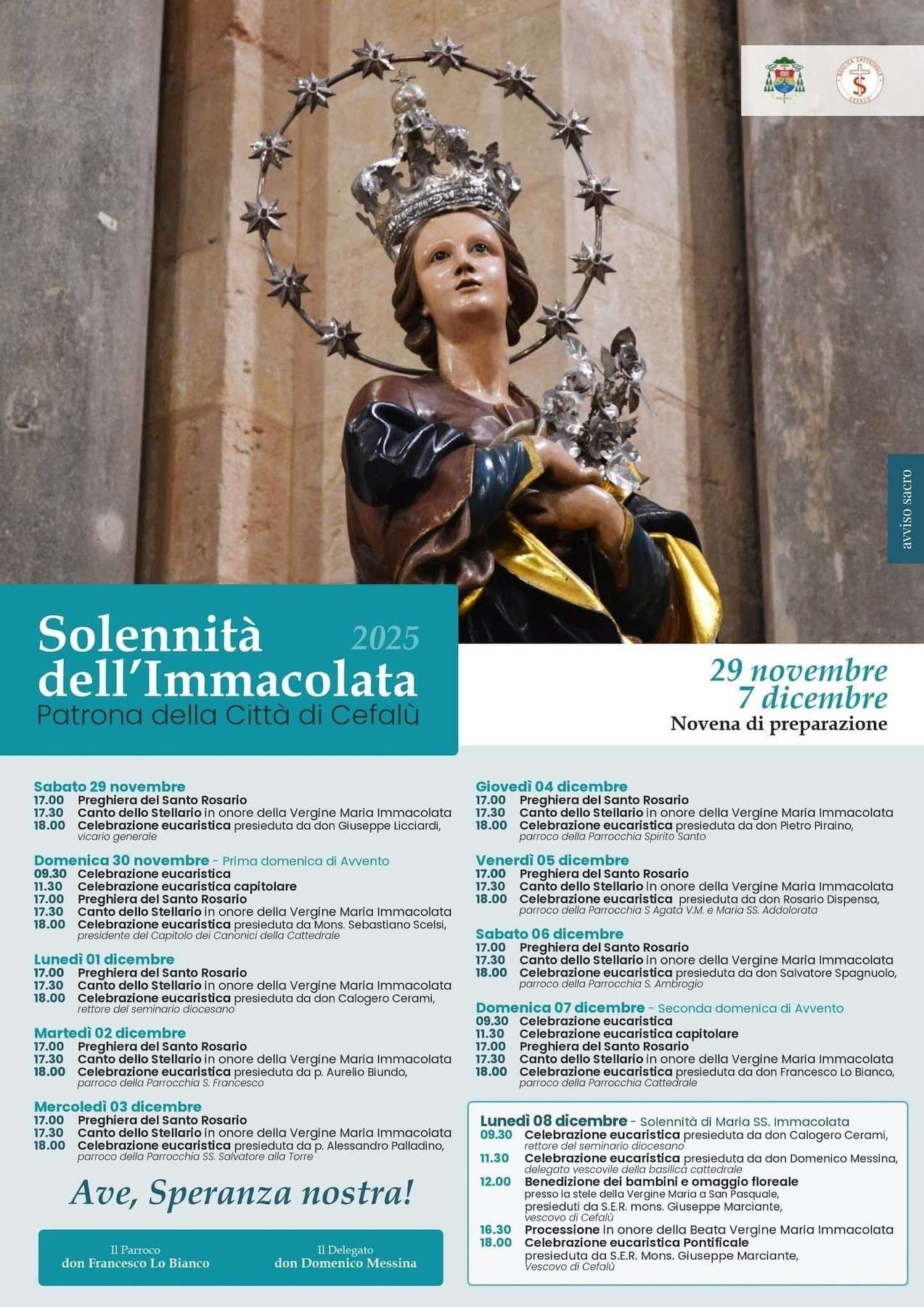 La festa dell’Immacolata di Cefalù con il tradizionale omaggio floreale alla statua presso la Chiesa di San Pasquale, la processione per le vie cittadine e il Solenne Pontificale in Cattedrale.