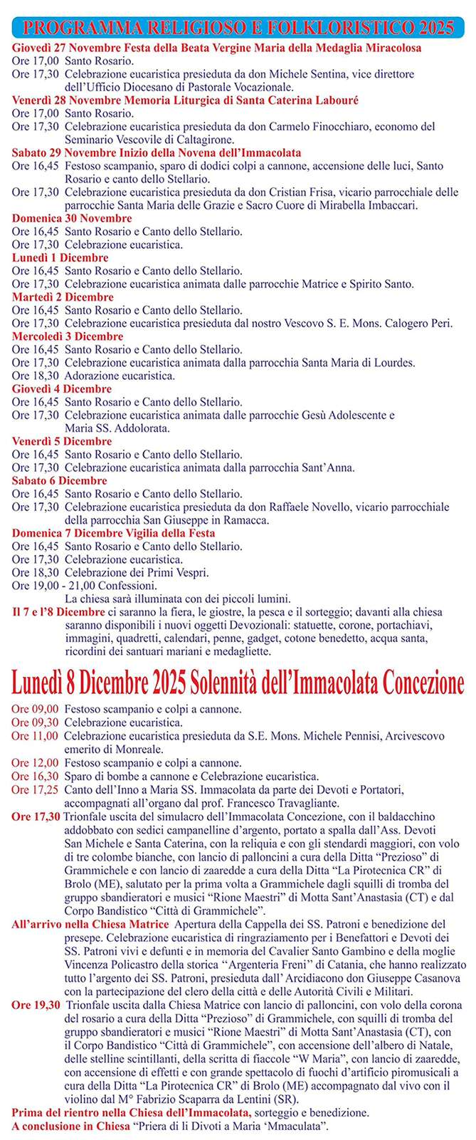 Le celebrazioni in onore della Madonna a Grammichele cominciano già a fine novembre, quando nella chiesa dell’Immacolata si svolge il novenario con il tradizionale canto dello stellario e la celebrazione eucaristica animata dai fedeli e dai gruppi delle varie parrocchie della cittadina.