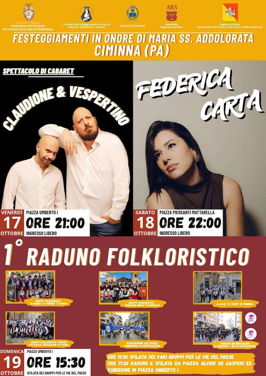 Le celebrazioni per Maria SS. Addolorata a Ciminna di ottobre si svolgono tra manifestazioni e spettacoli.
