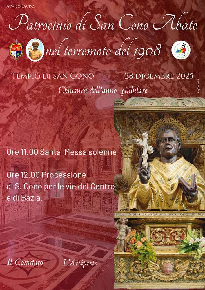 Le festività in onore di San Cono Abate del 5 marzo, giorno in cui si celebra la Santa Messa in suo onore e per le vie del centro si snoda la processione, si svolgono in memoria del patrocinio del Santo sulla città nel terremoto del 1823. Il 28 dicembre in memoria del sisma del 1908.