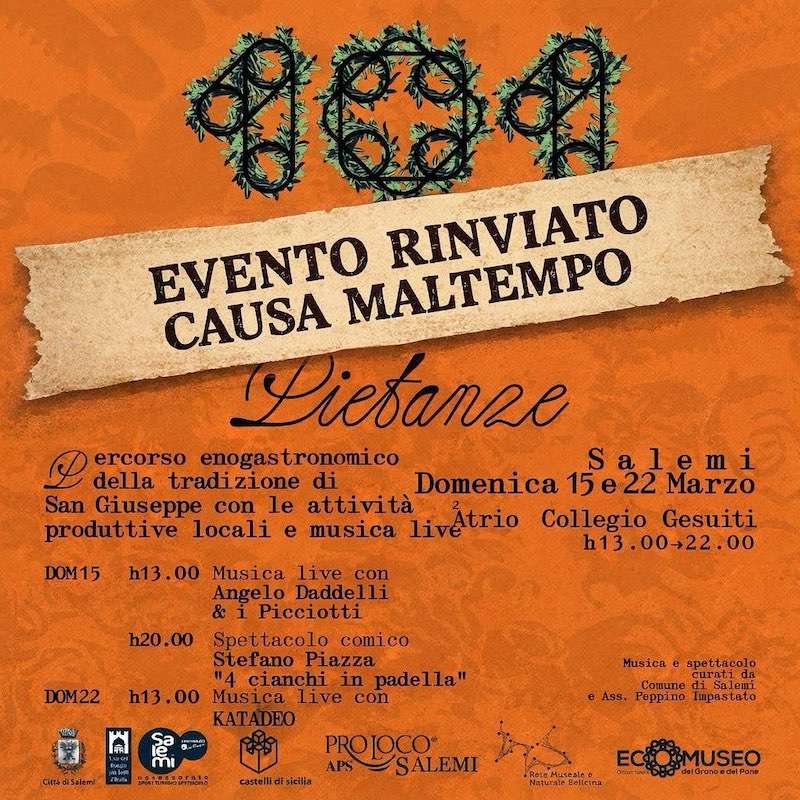 N.B. Festa di San Giuseppe 2026: A causa delle previsioni meteo particolarmente avverse, l’evento “Percorso enogastronomico “101 Pietanze – I Sapori della Tradizione”, inizialmente previsto per domenica 15, è stato posticipato a sabato 21 marzo.