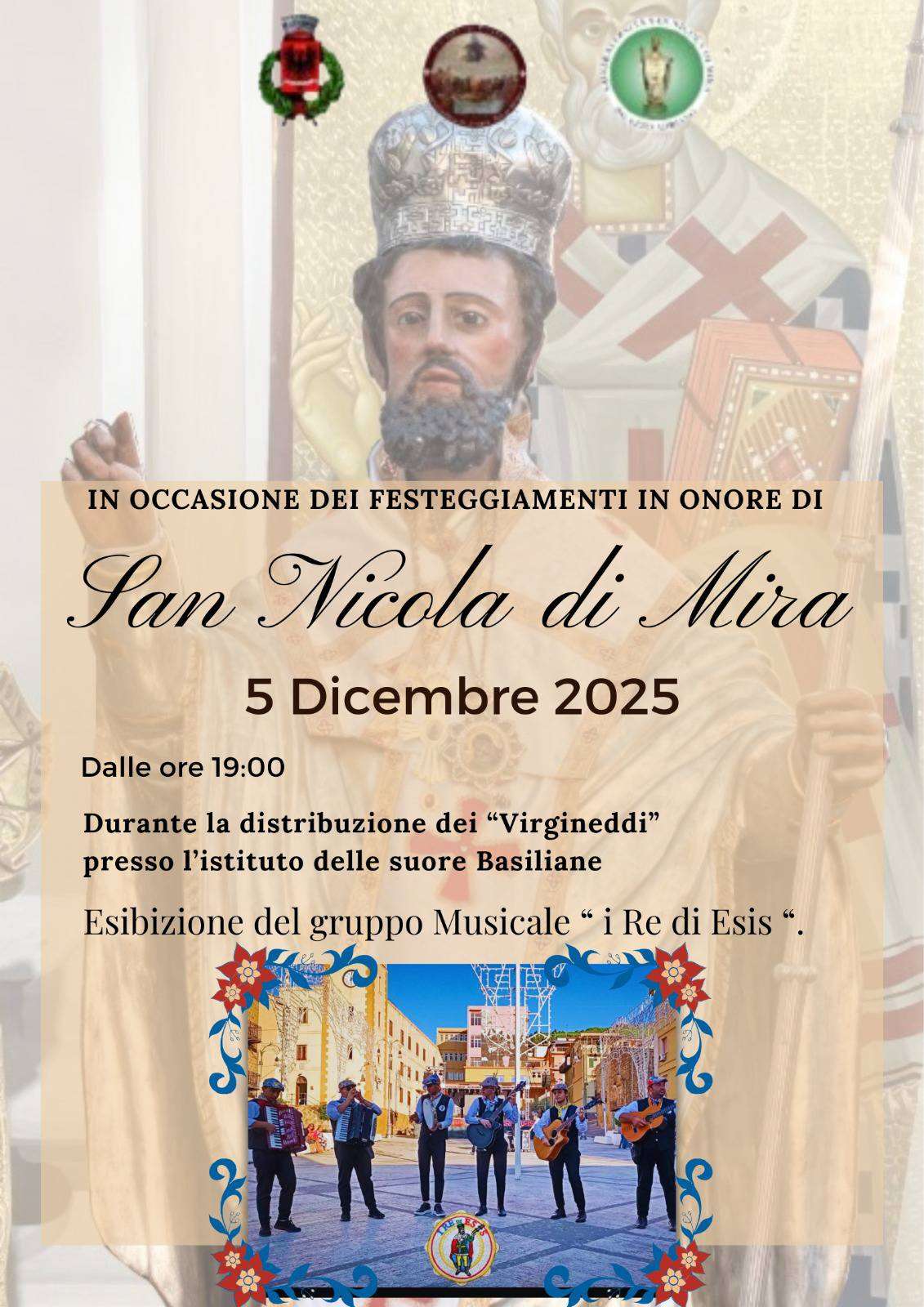 La Festa di San Nicola di Palazzo Adriano secondo la liturgia bizantina, le funzioni religiose della novena, il vespro solenne, la divina liturgia e la processione del simulacro. Benedizione e distribuzione dei tradizionali “Virgineddi”.