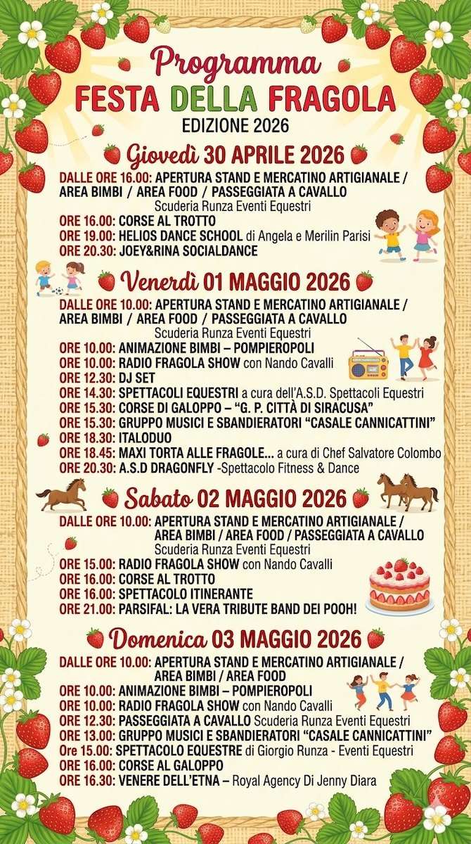 Programma 2026 della Festa della Fragola di Siracusa