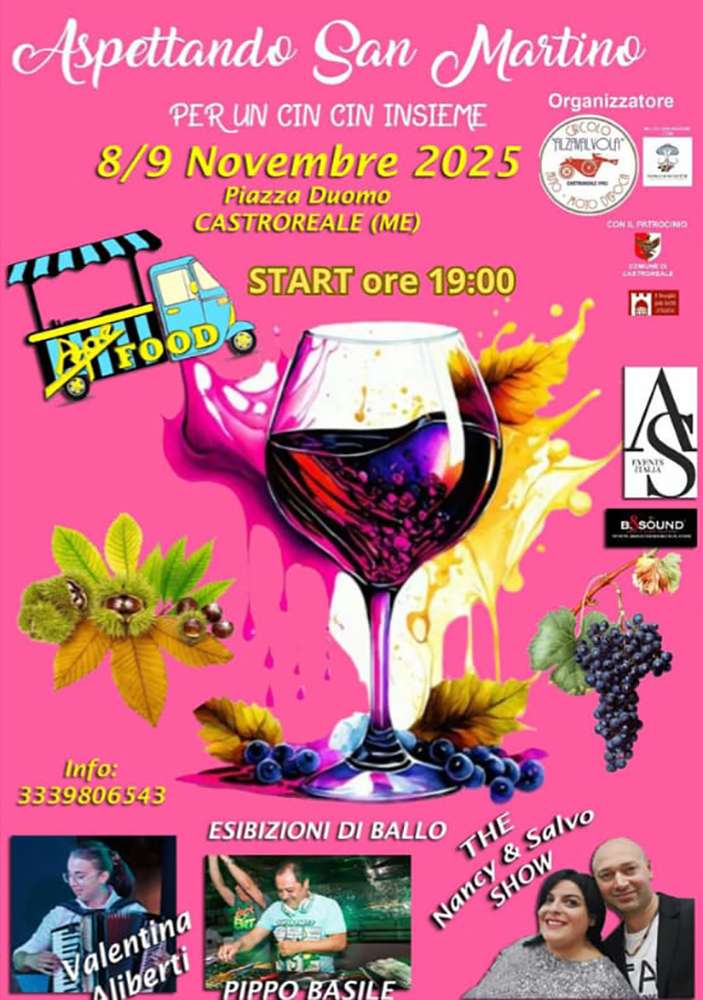 Un fine settimana da non perdere, dove l’autunno incontra la festa, il vino incontra la musica e Castroreale si illumina ancora una volta del suo spirito più vero: quello della condivisione e dell’amicizia.