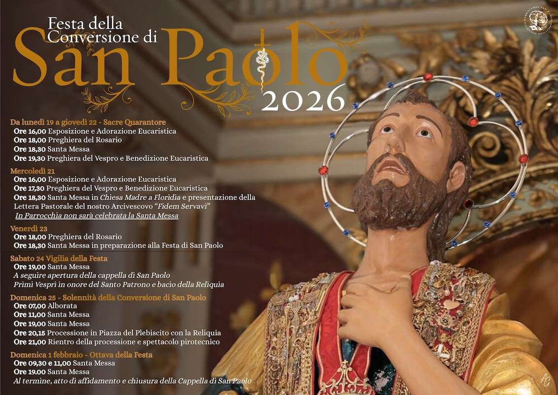 Durante la settimana che precede la prima domenica di agosto, Solarino si anima di celebrazioni religiose che si svolgono per le vie del paese, culminando nella benedizione con la reliquia di San Paolo, un momento di grande intensità spirituale per i devoti. La mattina della prima domenica di agosto, la festa patronale a Solarino viene annunciata da un’alborata, colpi a cannone e lo scampanio festoso della chiesa che risvegliano il paese. Segue il tradizionale giro per le vie del centro della banda musicale, che con le sue melodie accompagna i preparativi per i momenti culminanti della giornata. A mezzogiorno in punto, dopo la celebrazione della Messa, ha luogo la processione del simulacro di San Paolo Apostolo, portato a spalla dai devoti per le vie del paese. Durante la processione, una tradizione particolarmente toccante vede i bambini nati nell’anno offerti al Santo, simbolo di speranza e di rinnovamento. La Messa Solenne del tardo pomeriggio vede la partecipazione delle autorità locali e rappresenta un momento di comunione e riflessione. Al termine, il simulacro, collocato sul carro trionfale, viene portato in processione per le vie del paese al ritmo delle bande musicali locali, in una atmosfera di festa e partecipazione. La giornata si conclude in Piazza del Plebiscito, dove si svolge uno spettacolo che intrattiene i presenti fino al rientro del simulacro in chiesa, salutato da un magnifico spettacolo pirotecnico che illumina il cielo di Solarino, chiudendo in bellezza la festa in onore di San Paolo Apostolo, cuore pulsante della comunità e momento di profonda condivisione spirituale e culturale.