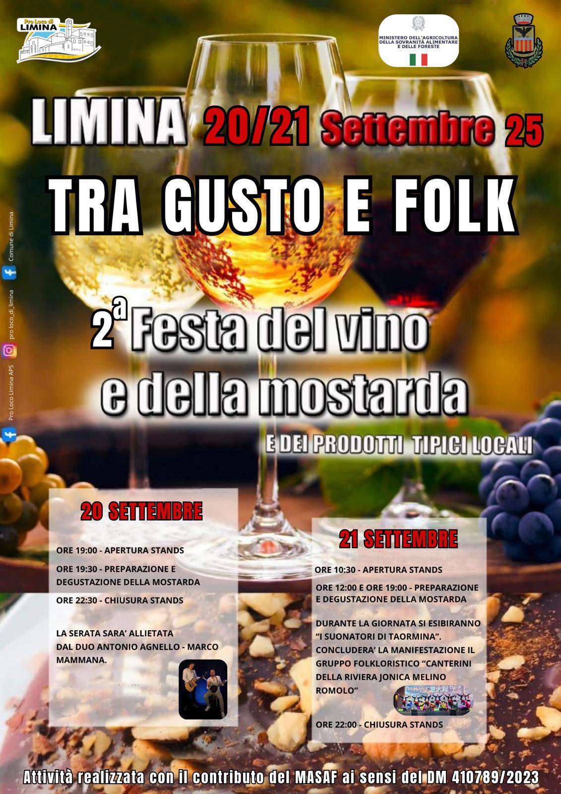 L’autunno, con i suoi sapori ricchi e i suoi colori avvolgenti, invita tutti a riscoprire i piaceri della tavola e a vivere momenti di convivialità. Durante la festa del vino e della mostarda di Limina, le strade si animeranno di stand enogastronomici dove sarà possibile degustare non solo vini locali, ma anche piatti tipici accompagnati dalla tradizionale mostarda. Inoltre, ci saranno stand dedicati all’artigianato locale, offrendo ai visitatori l’opportunità di acquistare manufatti artigianali, dalle ceramiche ai tessuti, espressioni della tradizione e maestria del territorio. Tra le esibizioni folkloristiche, la musica tradizionale e il profumo dei prodotti tipici, il calore del vino e il gusto deciso della mostarda faranno da filo conduttore a due giornate di festa, ricche di sapori e tradizioni, dedicate alla riscoperta delle radici culturali di Limina.