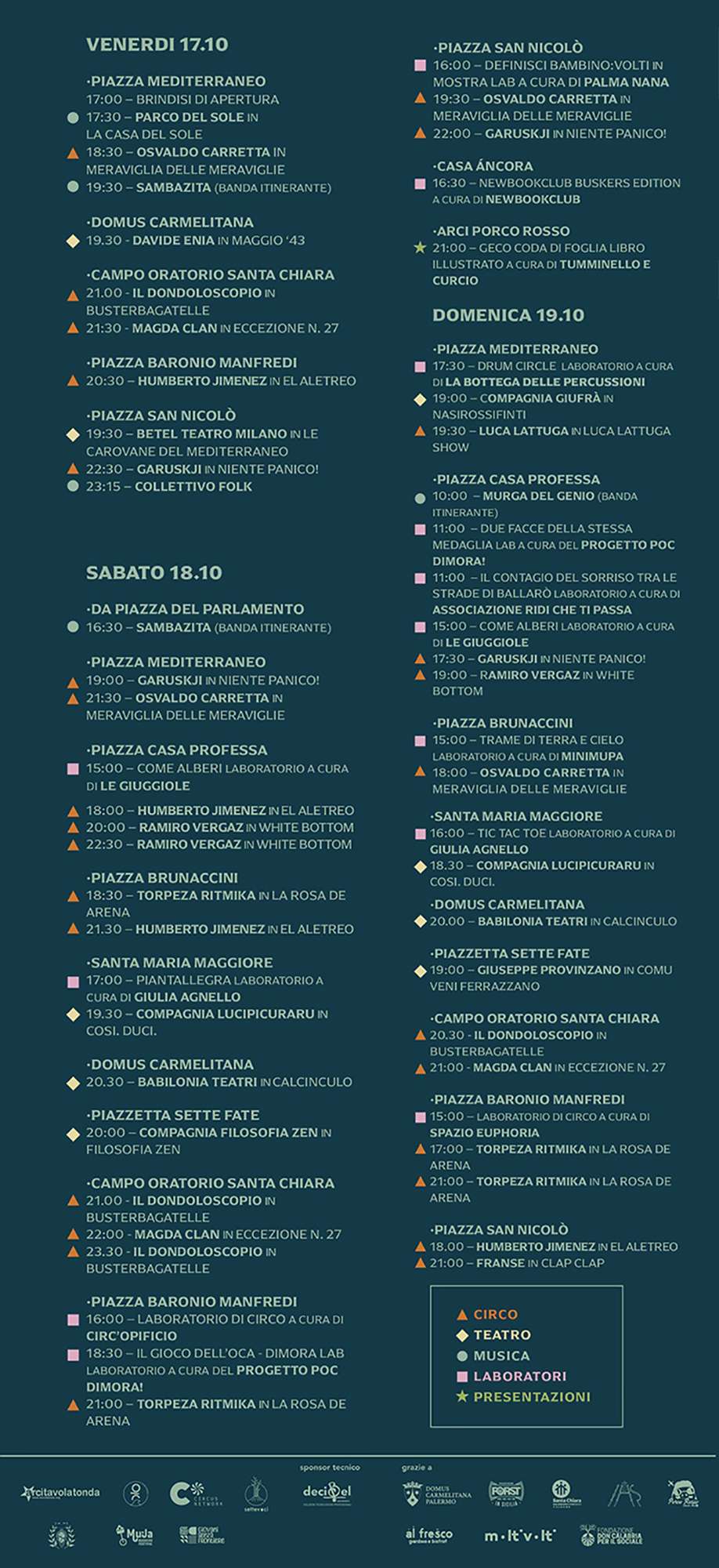 Ogni edizione del Ballarò Buskers Festival ha contribuito a scoprire e riqualificare nuovi spazi all’interno del quartiere. Luoghi abbandonati sono diventati gemme nascoste grazie alla cura e all’attenzione degli artisti, dei residenti e degli attivisti. Questi spazi, come Piazzetta Schiera, Ecce Homo, Mediterraneo, Sette Fate, Santa Rosalia, Giovanni Naso, Vicolo Gallo e il giardino di Handala, sono esempi straordinari di come la creatività e l’impegno possono trasformare quartieri e riportare in vita luoghi dimenticati. Il festival di Ballarò porta l’arte di strada nel cuore del centro storico di Palermo, trasformando per tre giorni l’aspetto del quartiere famoso in tutto il mondo per il suo caratteristico mercato all’aperto in stile arabo. Strade, piazze, monumenti e spazi di Ballarò si animano grazie all’intrattenimento degli artisti, che si esibiscono tra i banchi di prodotti locali, creando emozioni indimenticabili per grandi e piccini. Una miriade di artisti provenienti da diverse discipline – bande musicali, gruppi, cantanti, attori, saltimbanchi, giocolieri, danzatori, artigiani e performer – si riuniscono in un’unica sinfonia di espressione artistica nel millenario mercato storico di Ballarò, trasformandolo in un vibrante palcoscenico. Questo straordinario festival è un caloroso tributo alla diversità culturale e all’arte di strada, elementi che si fondono armoniosamente con la ricca tradizione del mercato di Ballarò, creando un’esperienza unica, capace di affascinare e ispirare chiunque vi partecipi!