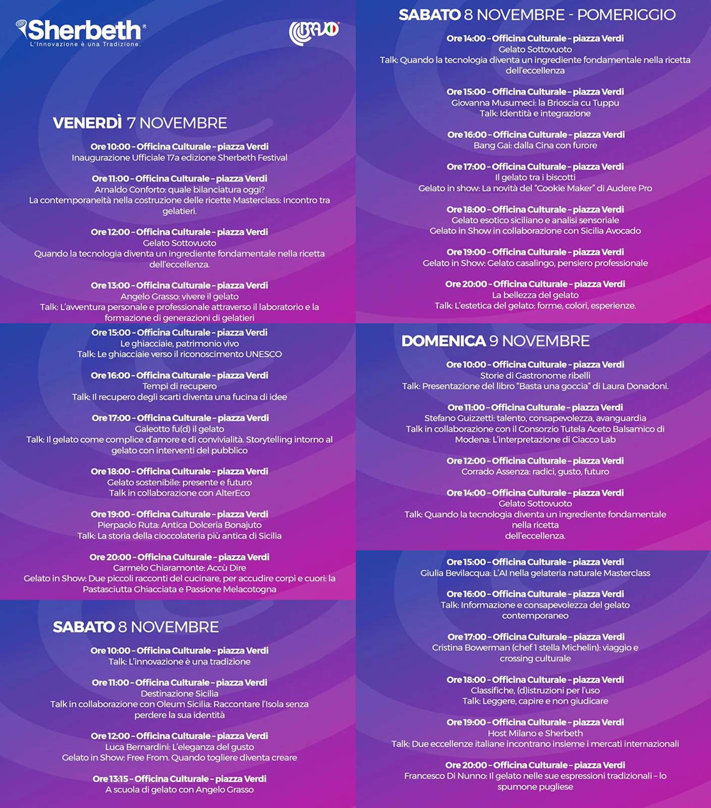 Il gelato artigianale nasce come un semplice sorbetto privo di latte. Fu Francesco Procopio dei Coltelli nel Seicento portando questa delizia direttamente dalla Sicilia al resto del mondo. L’eredità del nonno di Francesco includeva una macchina artigianale per la preparazione dei sorbetti, una creazione che aveva radici nei sorbetti arabi e che rappresentava il predecessore dei moderni gelati. Dopo averla testata con successo, decise di ampliare la sua produzione, dando il via a una tradizione che avrebbe deliziato il palato di generazioni a venire. Così, Francesco Procopio rivoluzionò completamente questa prelibatezza, adottando ingredienti di alta qualità: sostituì lo zucchero con il miele e aggiunse il sale al ghiaccio. Grazie a questa audace innovazione, Procopio cambiò per sempre il destino del gelato e diede il via alla prima gelateria di Parigi. È a lui che è dedicato il premio più prestigioso del concorso di Sherbeth, un omaggio al maestro che ha diffuso il gelato artigianale a livello internazionale. Sherbeth è molto di più di una celebrazione del gelato. Questo festival del gelato ha un’anima internazionale, attraendo maestri gelatieri di fama mondiale da tutto il globo. È un’occasione unica per condividere la creatività e l’esperienza nella produzione di gelato e, naturalmente, per essere riconosciuti e premiati per le loro straordinarie creazioni. Dal 2007, Sherbeth ha colorato di dolcezza le città siciliane di Catania, Palermo e Cefalù, unendo migliaia di visitatori, esperti del settore e appassionati di gelato in una grande festa internazionale. Questo evento non solo onora la tradizione del gelato artigianale, ma promuove anche l’innovazione e la creatività, dimostrando che il gelato è molto più di un dessert estivo: è un’arte in continua evoluzione che può incantare il palato di chiunque, ovunque nel mondo. Sherbeth è il luogo in cui questa arte si esprime al meglio, rendendo omaggio alle sue radici siciliane e alle innumerevoli storie dietro ogni gustoso gelato.