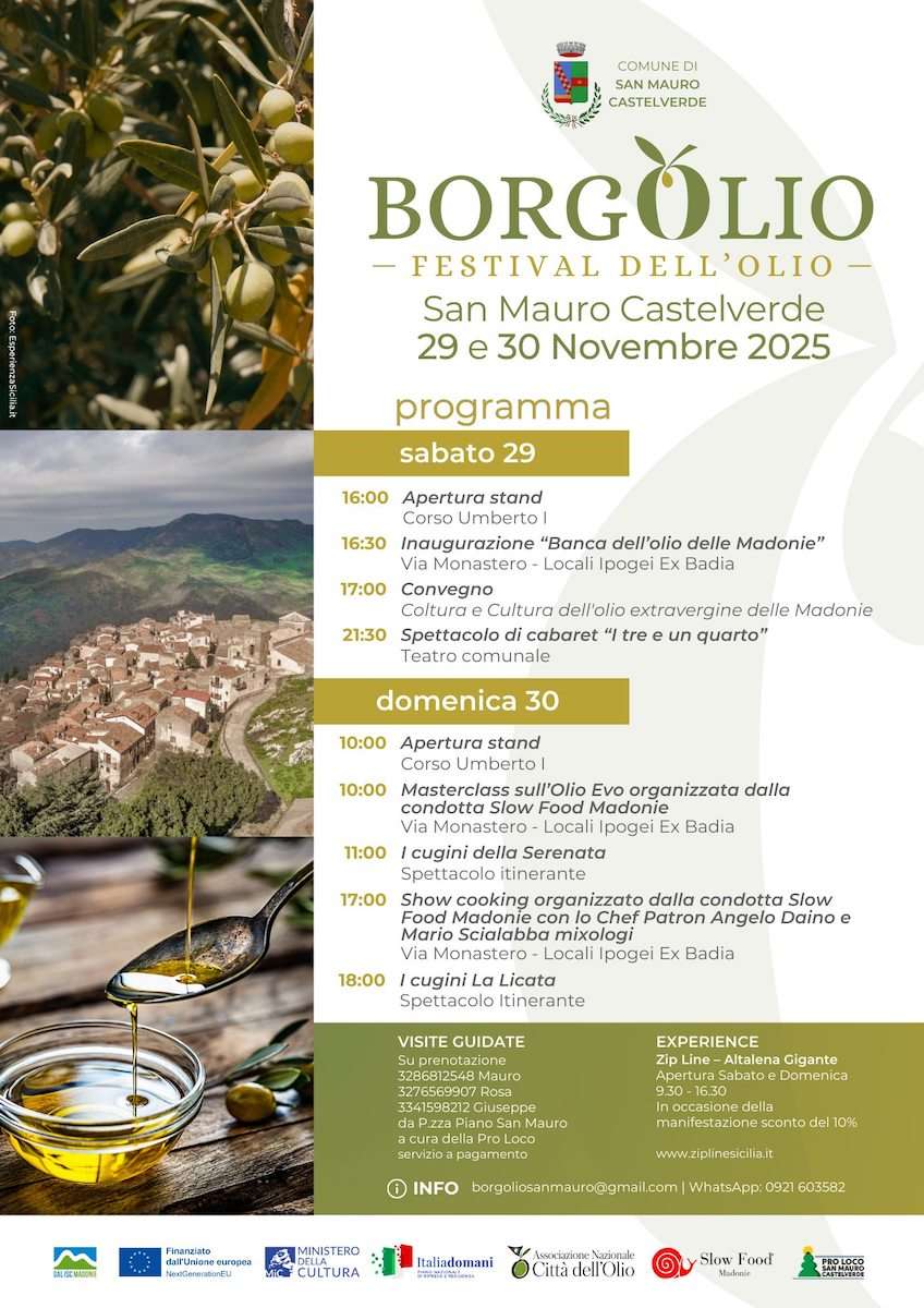 Nel pittoresco borgo di San Mauro Castelverde, autentica perla delle Madonie, prende vita la prima edizione di “BorgOlio – Festival dell’Olio”, un nuovo appuntamento che inaugura la stagione dell’autunno gastronomico siciliano. La rassegna nasce con l’obiettivo di valorizzare e celebrare l’olio extravergine d’oliva e le eccellenze agroalimentari del territorio madonita, offrendo un’esperienza di scoperta, gusto e cultura dedicata all’oro verde delle Madonie. Due giornate intense, tra degustazioni, incontri, laboratori e momenti di approfondimento, per conoscere da vicino una delle produzioni più preziose della Sicilia e i suoi protagonisti: gli olivicoltori, i produttori locali e le famiglie che custodiscono da generazioni le antiche tecniche di lavorazione.