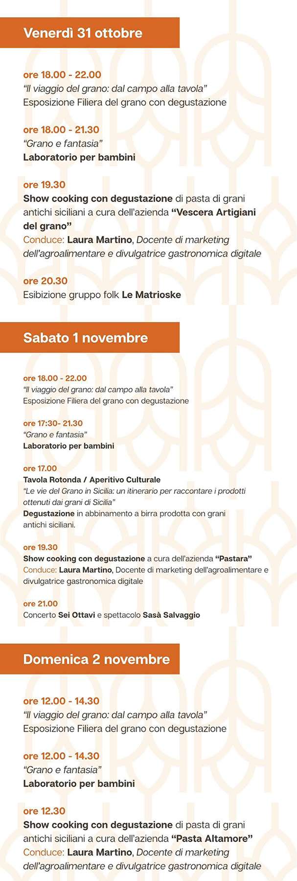 Accanto ai momenti gastronomici, il festival ospiterà anche tavole rotonde e incontri divulgativi, dove esperti e studiosi racconteranno il percorso di rinascita di questi cereali e il loro ruolo nella filiera agricola e artigianale siciliana. Spazio anche all’intrattenimento, con folklore, spettacoli musicali e serate di cabaret, per vivere la festa in un clima di allegria e convivialità.