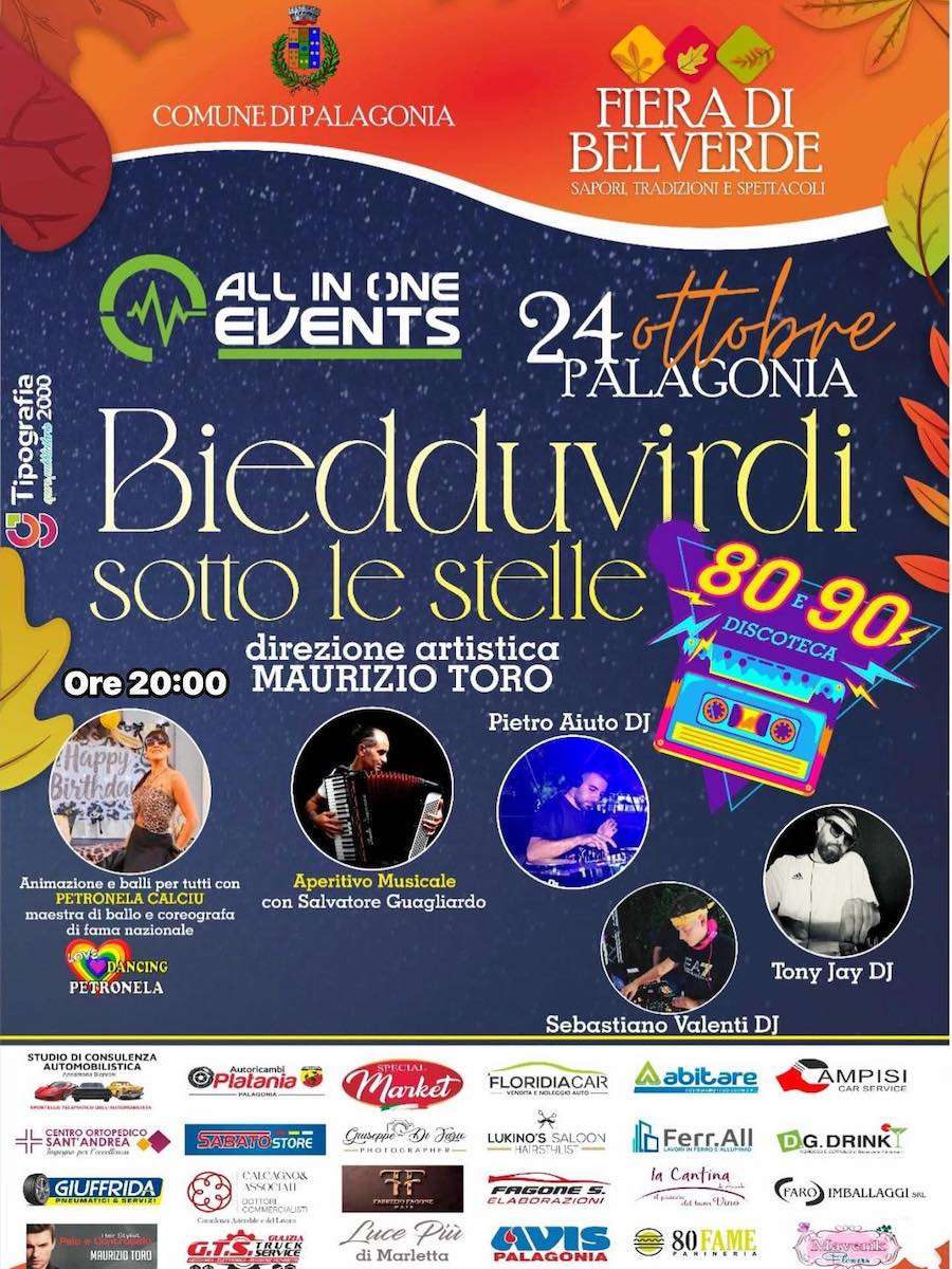 La Fiera di Belverde di Palagonia è la rassegna artigianale e dei prodotti agroalimentari che tutti gli anni la città organizza nel mese di ottobre. A fera di Biedduviddi con gli stands espositivi allestiti tra le piazze e le vie del centro urbano, dedicati ai tanti prodotti dell’agroalimentare e dell’artigianato.