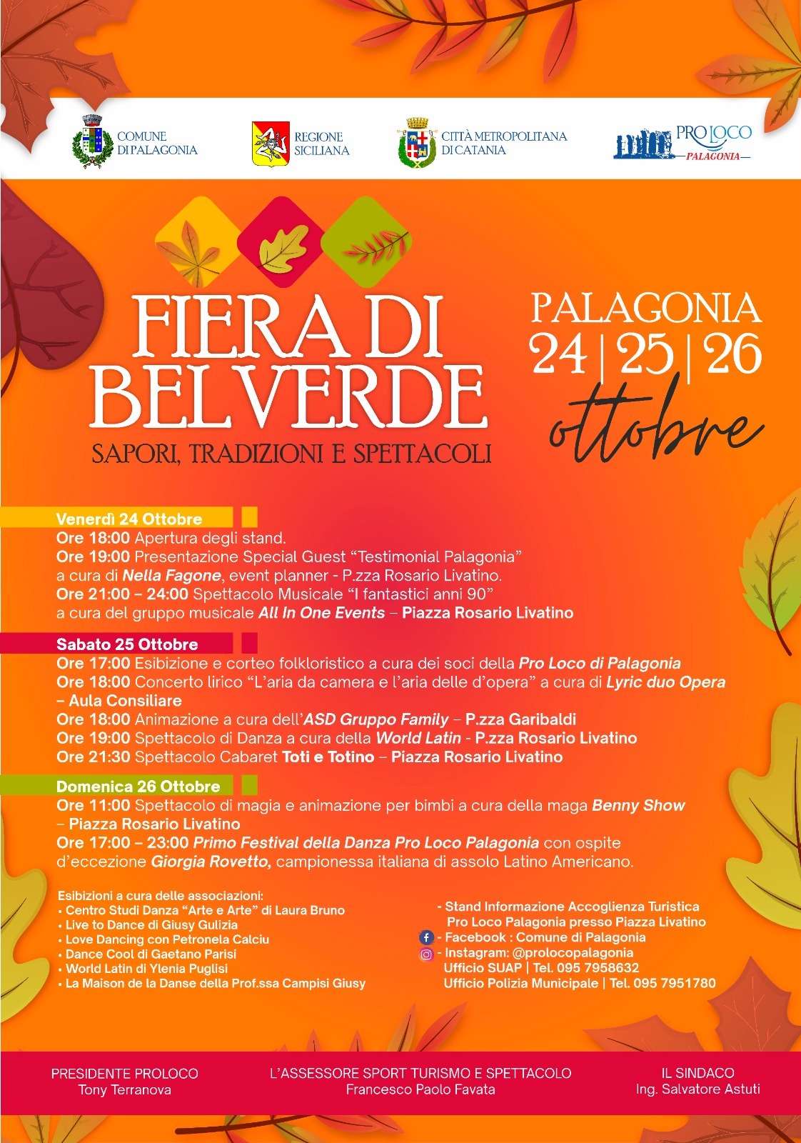 La Fiera d’Ottobre di Palagonia, più conosciuta come “Fiera di Belverde” si svolge la seconda domenica di ottobre e rappresenta un richiamo per tantissimi visitatori, provenienti anche dai paesi limitrofi in cerca di prodotti tipici, artigianali e agroalimentari.
