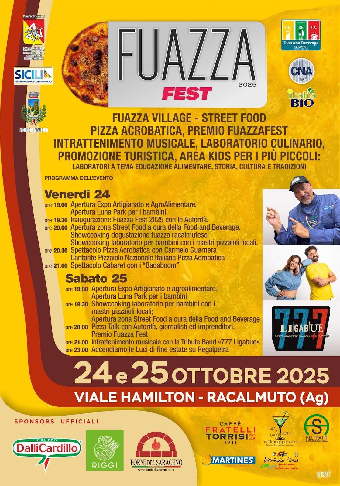 La fuazza racalmutese è molto più di un piatto: è un simbolo di convivialità e tradizione. Preparata con ingredienti semplici e genuini come pomodoro, acciughe, olive nere, aglio, pecorino siciliano e origano, viene cotta nel forno a legna e girata con cura per ottenere una cottura uniforme. Durante il festival sarà possibile assaggiarla in tutte le sue varianti, dalla classica fino alle versioni più creative, sempre nel rispetto della tradizione. Accanto alla fuazza, il pubblico potrà gustare il meglio della pizza made in Sicily e dello street food siciliano, con specialità che raccontano la storia del cibo di strada dell’isola, fatto di sapori intensi e ingredienti autentici.