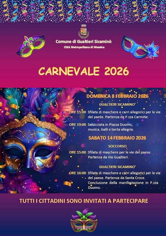 Programma Carnevale Gualtieri Sicaminò 2026