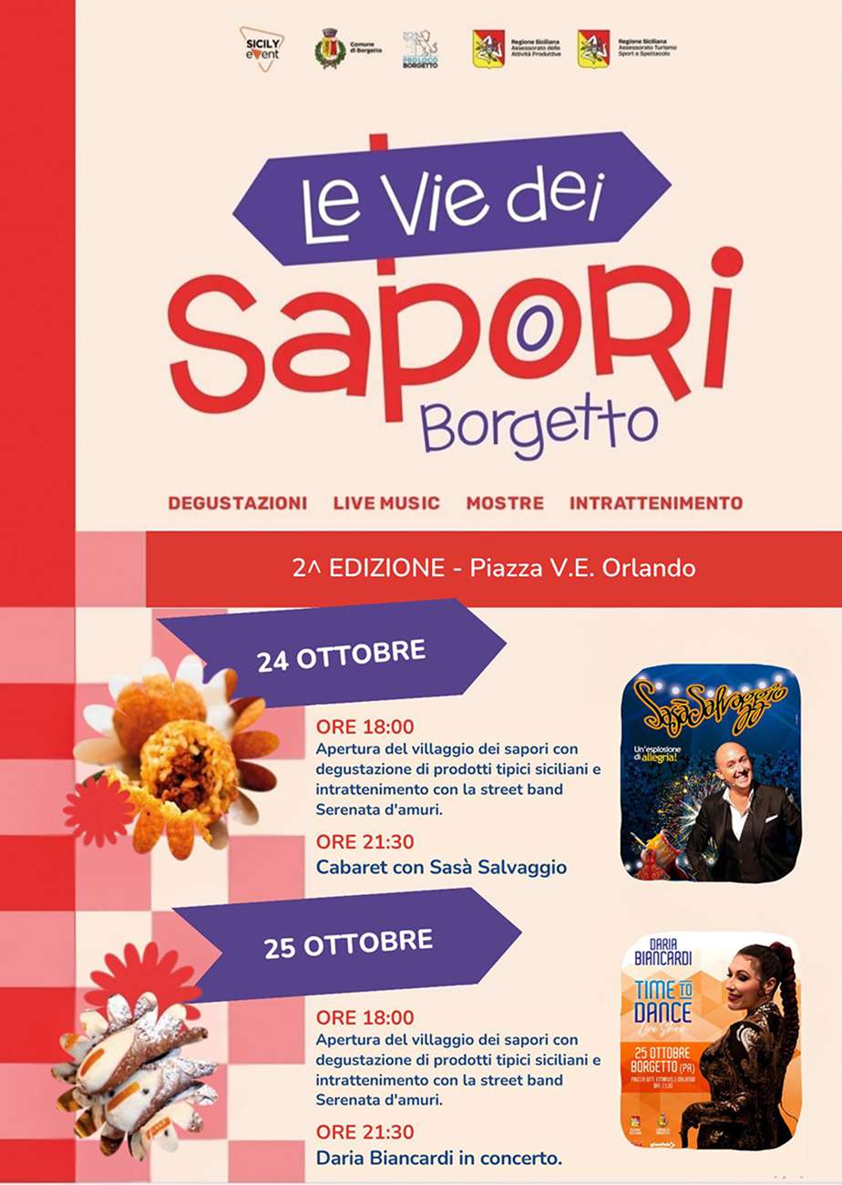 L’obiettivo de Le Vie dei Sapori è quello di valorizzare le eccellenze locali, promuovendo i sapori autentici della Sicilia e le tradizioni che da sempre la contraddistinguono. Tra piatti tipici, dolci della tradizione, vini e spettacoli dal vivo, Borgetto si prepara a vivere due serate speciali, dove ogni via, ogni stand e ogni nota musicale racconteranno l’anima più genuina dell’isola.