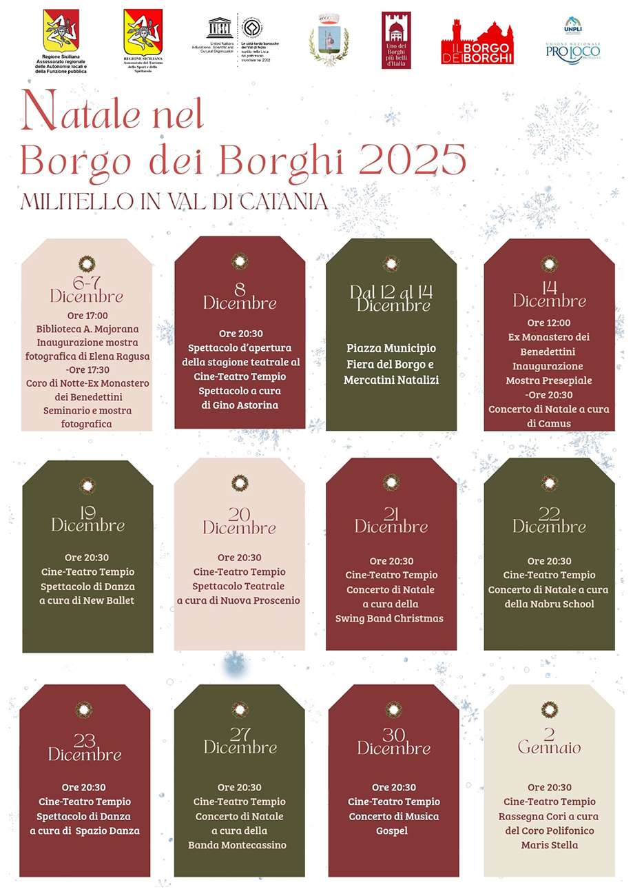 La Fiera del Borgo e i Mercatini di Natale a Militello in Val di Catania celebrano le tradizioni locali e l’artigianato e sono anche un’occasione per riunire la comunità, i visitatori, offrendo un assaggio delle tradizioni e dei sapori locali....