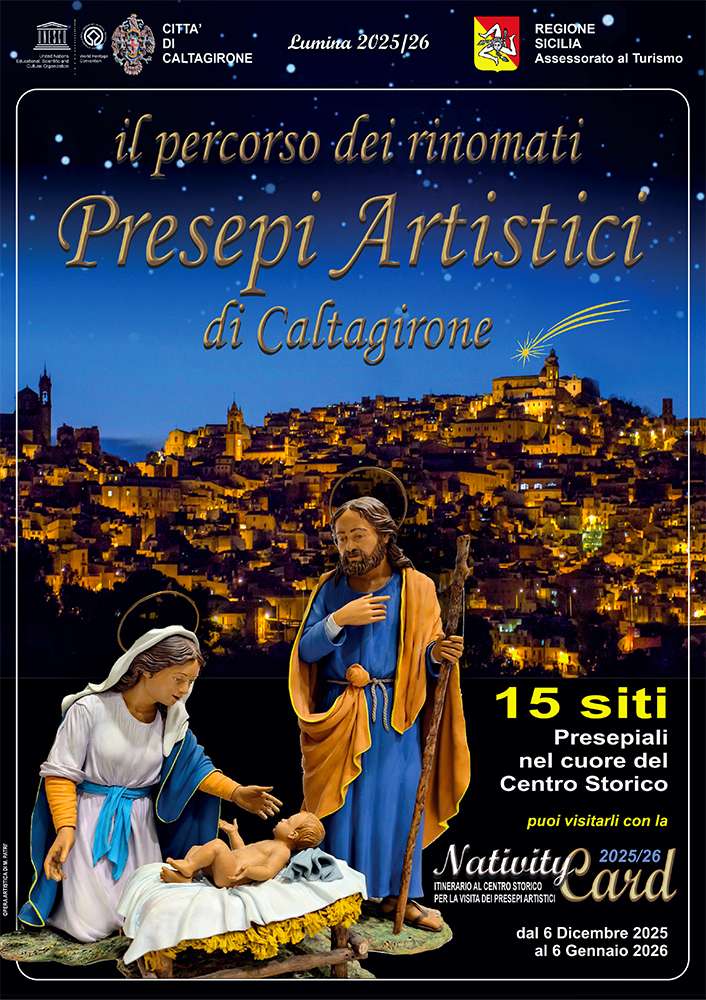 A Caltagirone la realizzazione di questi capolavori ha una lunga tradizione e l’esposizione nelle case private e nei luoghi pubblici della città risale al Seicento. I presepi di Caltagirone, che sono realizzati anche con l’utilizzo di altri materiali, si differenziano per grandezza, colori, ambientazione e tipologia ed assumono le particolarità dell’artista che li realizzano, che mettono in scena i valori della civiltà contadina e momenti di vita quotidiana. Tra i numerosi presepi artistici antichi e moderni ospitati all’interno di chiese, musei, luoghi pubblici e privati, si potranno ammirare il presepe più grande d’Italia, con oltre trecento personaggi in terracotta animati, montagne, ruscelli d’acqua ed antiche abitazioni e il presepe in movimento a grandezza umana, con circa cento personaggi in tessuto e terracotta. Anche il Borgo di Granieri a Natale, partecipa alle celebrazioni con una piccola sacra rappresentazione vivente presso la Chiesa di San Giovanni Battista, che rende ancora più speciale il periodo natalizio. I Mercatini di Natale di Caltagirone, allestiti in Piazza e nel sagrato della Cattedrale, offrono una vasta gamma di prodotti artigianali. Questi mercatini natalizi rappresentano un’opportunità unica per scoprire le eccellenze della gastronomia e dell’artigianato siciliano ed immergersi nell’atmosfera calda e accogliente che caratterizza Caltagirone a Natale. Passeggiando tra le bancarelle, si possono trovare manufatti di artigianato locale e assaggiare specialità natalizie, trasformando ogni visita in un’esperienza autentica.
