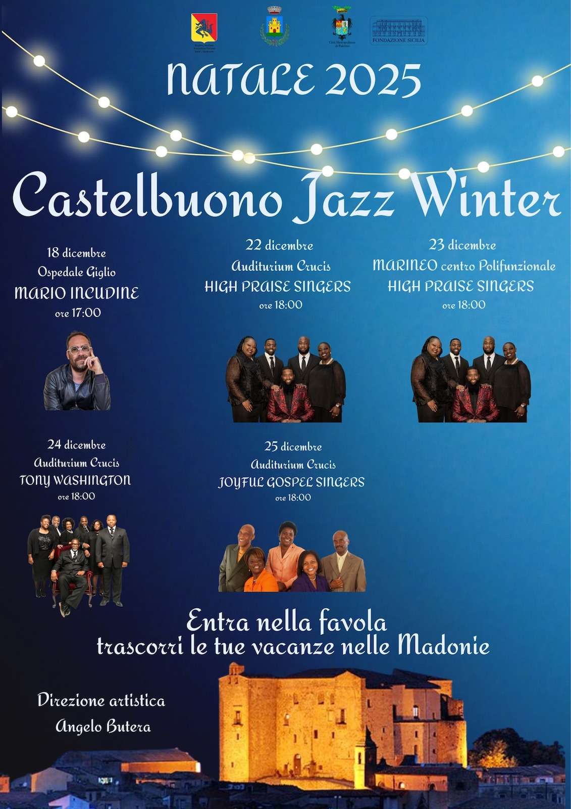 Tutta la cittadina si veste a festa con gli addobbi e le luci del Natale. Tra gli appuntamenti da non perdere U viaggiu Dulurusu, la tradizionale novena itinerante che l’Ass. Culturale “Lorimest” porta in scena per le stradine più caratteristiche del centro storico. Nel Natale a Castelbuono non mancheranno i concerti, le mostre, gli spettacoli itineranti, lìappuntamento tradizionale con il Castelbuono Jazz Winter e il teatro. Tanto intrattenimento anche per i bambini con ‘A vecchia che se ne andrà in giro per il paese il 30 dicembre.