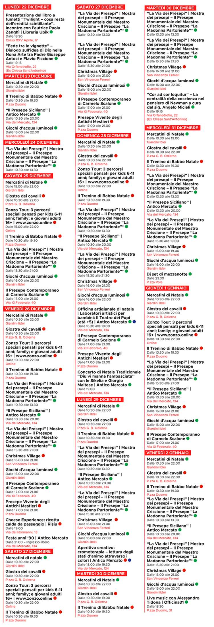 I visitatori possono continuare a lasciarsi avvolgere dalla magia esplorando i vicini Giardini Iblei, che ospita i suggestivi Mercatini di Natale. Tra giochi d’acqua luminosi, artigianato locale e prelibatezze gastronomiche, è il luogo ideale per scoprire regali originali e delizie tipiche.