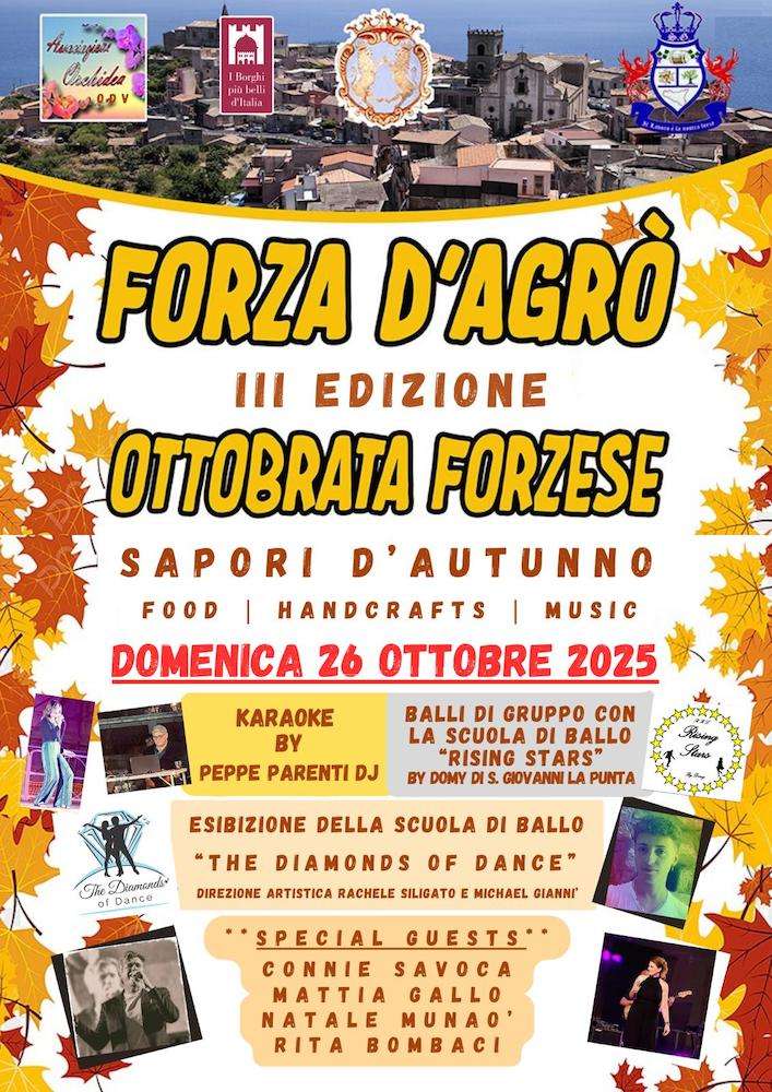 Quest’anno anche il borgo di Forza d’Agrò si prepara alla sua Ottobrata, organizzata dall’Associazione Orchidea. Per la prima volta, questo pittoresco borgo, famoso per la sua storia millenaria e le bellezze artistiche, si trasforma in un luogo di incontro per celebrare la cultura locale e i sapori autunnali.