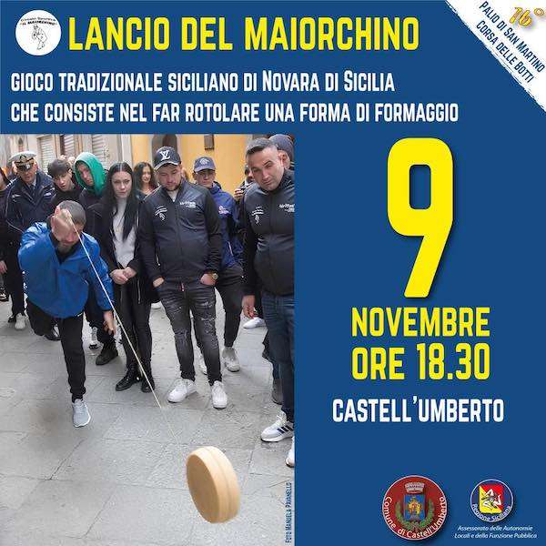 Il Palio delle Botti si tiene a Castell’Umberto durante il fine settimana più vicino all’11 novembre, giorno dedicato a San Martino, un Santo venerato sia nella liturgia cristiana che nella tradizione rurale. In Piazza IV Novembre saranno allestiti numerosi stand gastronomici dove sarà possibile degustare i prodotti tipici del territorio. Ma il momento più atteso e spettacolare della manifestazione è senza dubbio la Corsa delle Botti: un’appassionante sfida tra squadre provenienti da tutta Italia, che si confrontano in una gara adrenalinica e divertente, capace di entusiasmare sia i partecipanti che il pubblico presente. Questa manifestazione rappresenta un’opportunità unica anche per immergersi, visitare e scoprire le bellezze artistiche e naturalistiche di questa zona, nonché per assaporare le prelibatezze culinarie che la nostra terra abbondantemente offre. Per due giorni, attira un flusso vitale di turisti, provenienti non solo dal territorio circostante, ma da tutto il resto dell’isola. Il Palio di San Martino di Castell’Umberto consentirà agli ospiti di fare visita a Castania, che racconta il passato del piccolo centro, dove vi sono i resti del castello di epoca bizantina, o al Parco ecologico di Piano Collura, una vera e propria area naturalistica che ospita anche daini e cervi. L’evento offre numerosi e diversificati momenti di intrattenimento, con esibizioni musicali e artisti di vario genere, coinvolgendo l’intero pubblico in una festa coinvolgente.