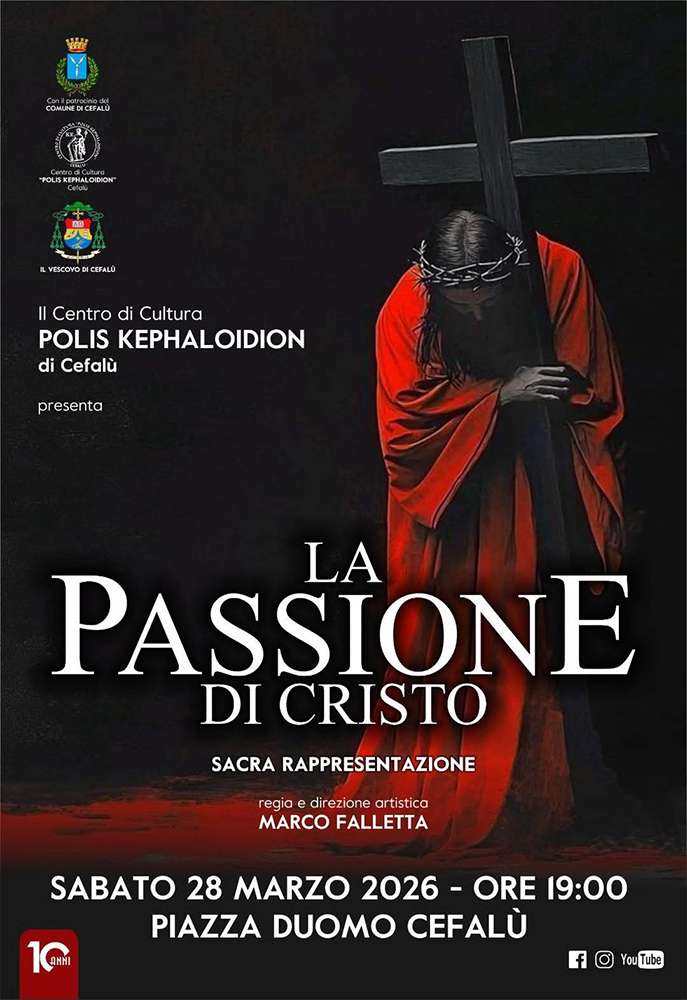 La Passione di Cristo di Cefalù, a cura del Centro di Cultura Polis Kephaloidion e la regia e direzione artistica di Marco Falletta, andrà in scena Sabato 28 Marzo a partire dalle ore 19,00.