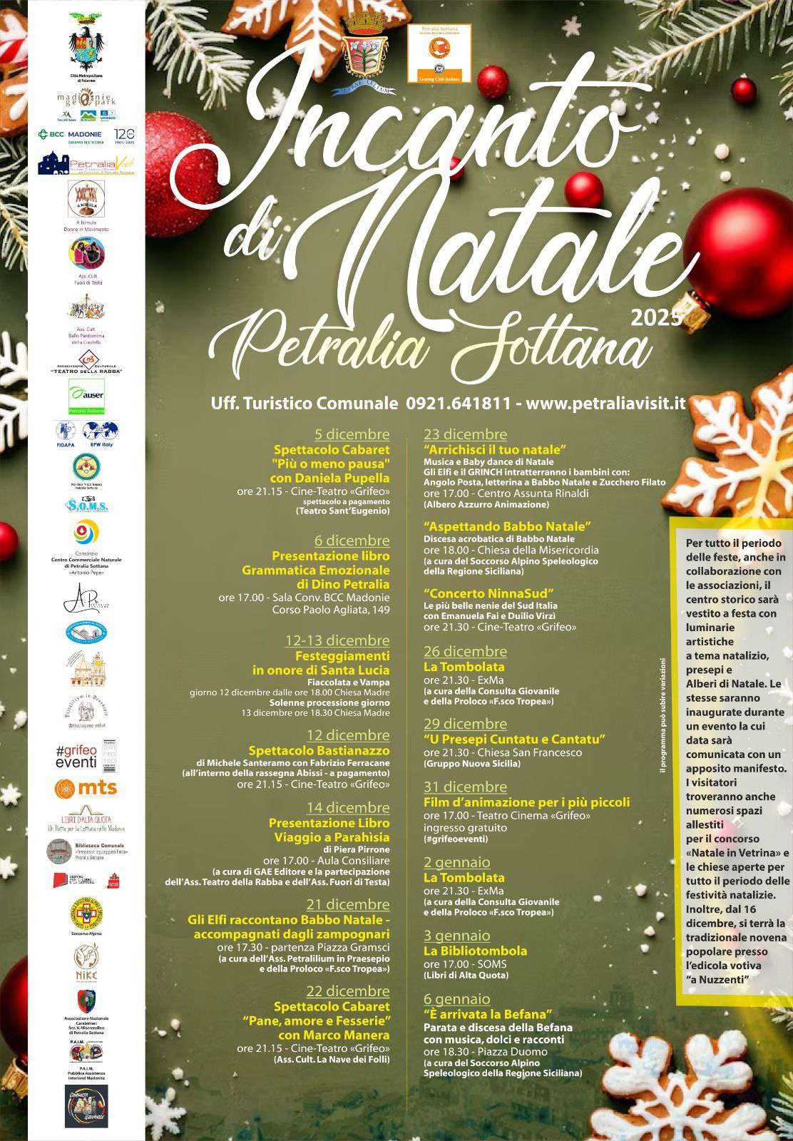 Il Natale a Petralia Sottana anima il centro storico e le sue meravigliose chiese con concerti, mostre, coro di voci bianche, spettacolo teatrali, babbo Natale e zampognari.
