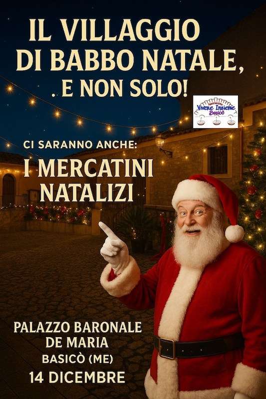 Ad arricchire l’esperienza natalizia a Basicò, il suggestivo Palazzo Baronale De Maria, storica residenza nobiliare del XVI secolo, ospiterà un Villaggio di Babbo Natale, dove grandi e piccoli potranno incontrare Babbo Natale in persona, partecipare a giochi e spettacoli, e scoprire le tante sorprese in programma. Tra gli eventi da non perdere, lo spettacolo equestre del 14 dicembre, che promette di emozionare tutti i presenti. L’area food, invece, offrirà l’opportunità di degustare e acquistare prodotti tipici del territorio, per portare a casa un pezzo di questa terra ricca di tradizioni.