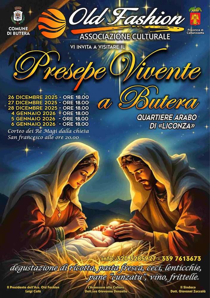 Nel suggestivo quartiere arabo di Liconza, dove le pietre antiche e le case in calcare raccontano ancora oggi il fascino di epoche lontane, prende vita uno degli eventi più attesi del Natale siciliano: il Presepe Vivente di Butera, organizzato dall’Associazione Culturale Old Fashion. In questo luogo ricco di memoria e identità, la tradizione si fonde con la storia in un’esperienza che va ben oltre la semplice rievocazione: è un viaggio nell’anima del paese, nella sua cultura e nelle sue radici.