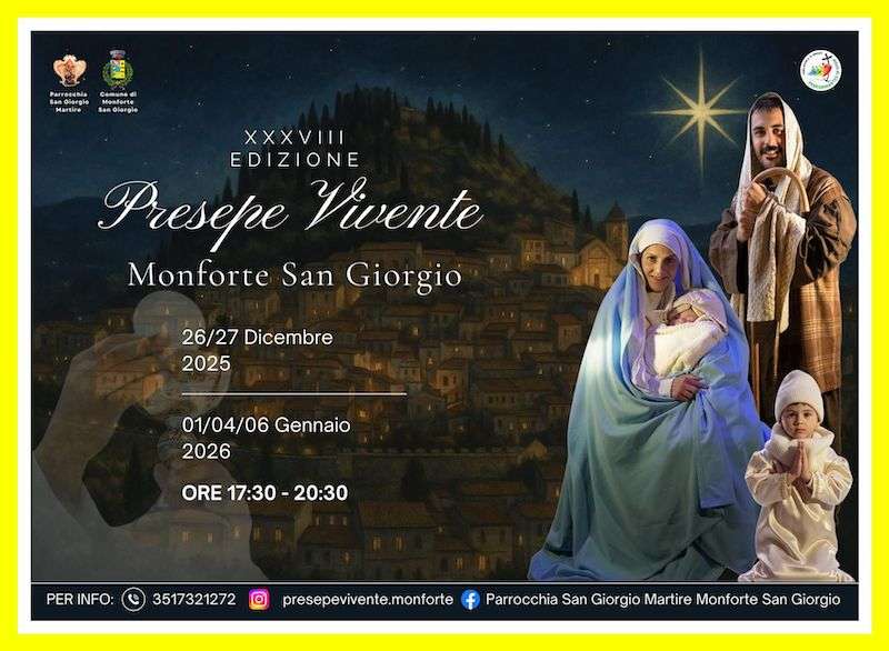 Il Presepe vivente di Monforte San Giorgio organizzato tutti gli anni dalla comunità parrocchiale è “la più grande storia d’amore raccontata” e va in scena nel quartiere più antico del paese richiamando visitatori da ogni parte del comprensorio.