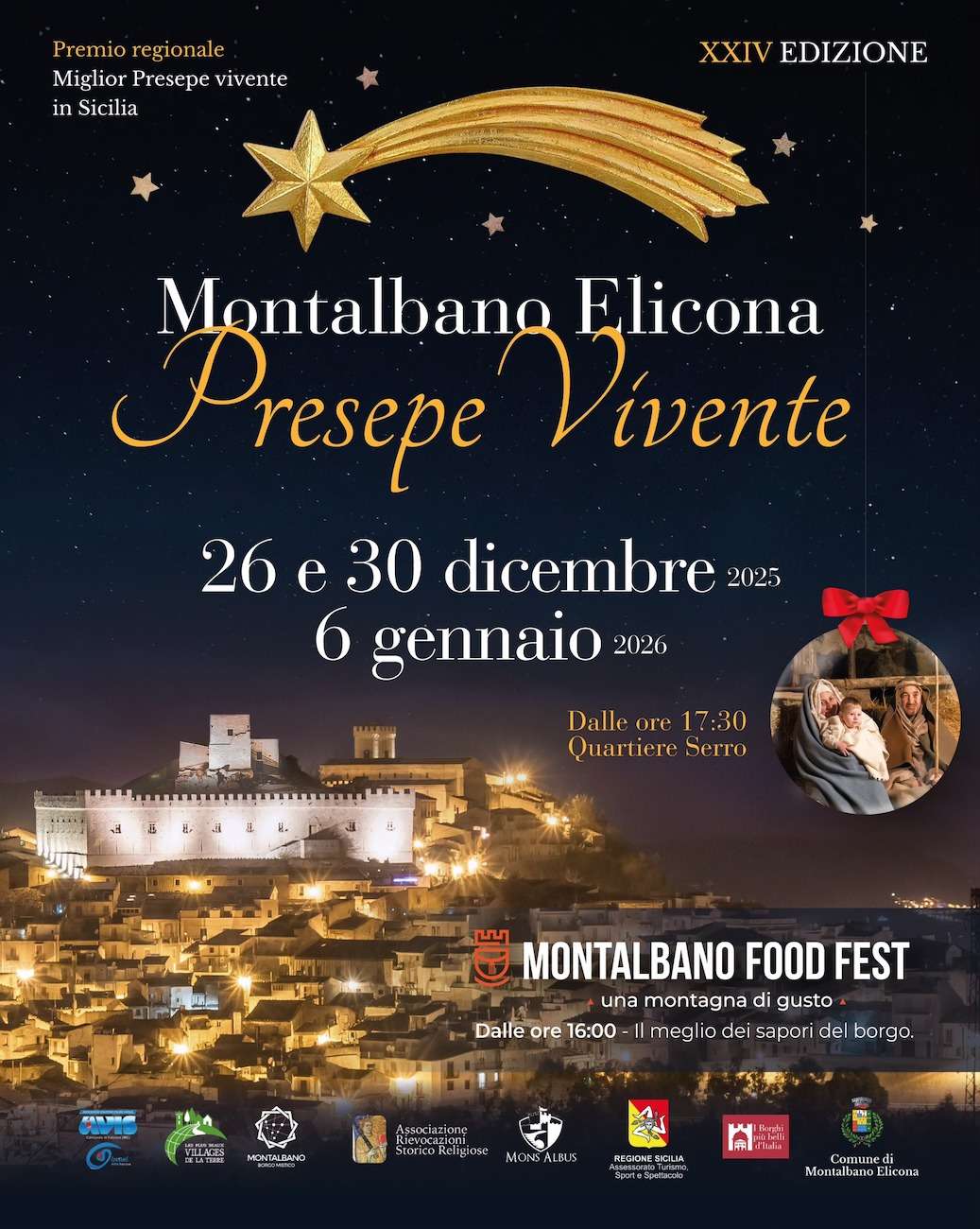 Il Presepe Vivente di Montalbano Elicona sarà animato da numerosi figuranti, dalle melodie delle migliori cornamuse dei Nebrodi e quest’anno si accompagnerà ai Mercatini di Natale e allo street food di Montalbano Food Fest.