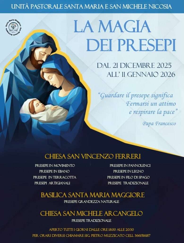 Ogni anno il presepe vivente di Nicosia viene arricchito da un tema centrale, scelto per accompagnare la comunità in una riflessione profonda e attuale. Le scene animate, curate nei dettagli, offrono al pellegrino uno sguardo cristiano sulla quotidianità, sulle relazioni e sulle sfide che attraversano il nostro tempo.
