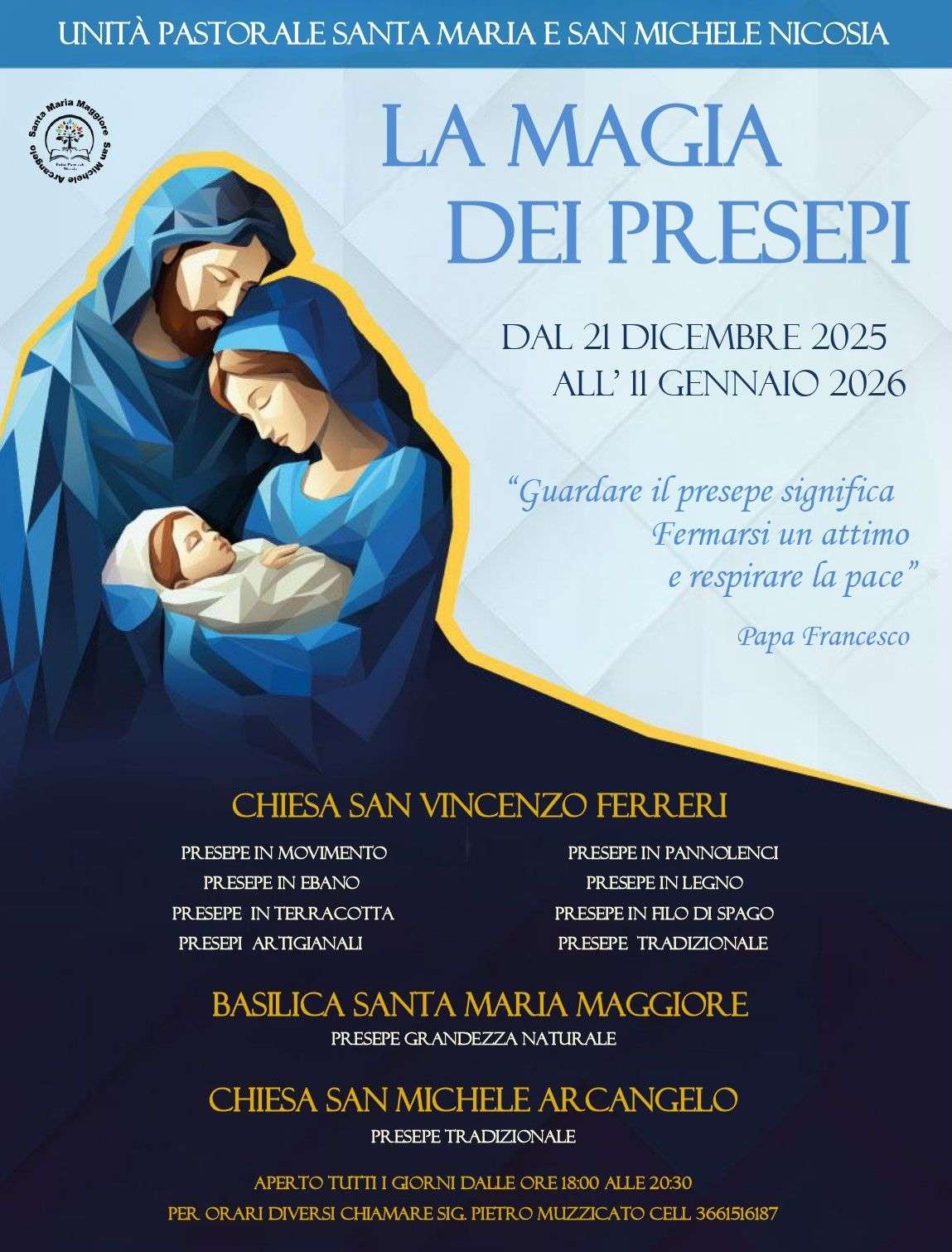 L’ingresso, consentito solo su prenotazione, avviene per piccoli gruppi per favorire ascolto, attenzione e partecipazione. Ogni scena offre un messaggio, un gesto, uno spunto di meditazione che accompagna il pellegrino passo dopo passo, fino al Mistero della Natività del Dio fatto Uomo. Il percorso, fisico e spirituale allo stesso tempo, si conclude nella gioia del Natale, lasciando a ciascuno un’emozione che resta, un silenzio che parla, una luce che accompagna.