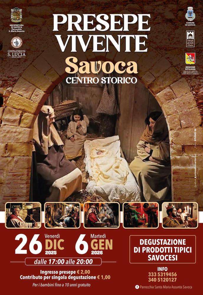Il Presepe Vivente 2025 a Savoca è in programma il 26 dicembre e il 6 gennaio 2026.
