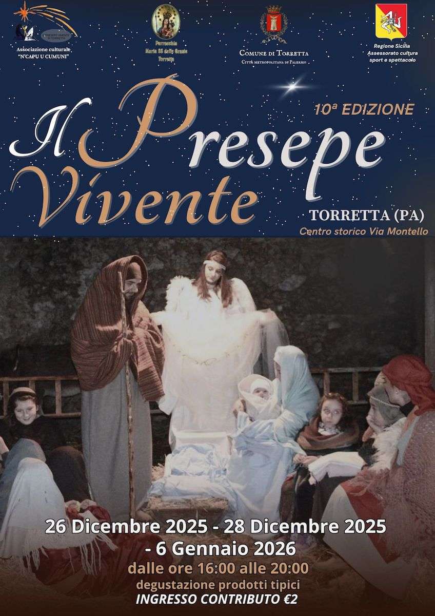 In occasione delle festività natalizie il borgo antico di Torretta si anima con il Presepe vivente, la rappresentazione degli antichi mestieri, la degustazione dei prodotti tipici locali e il mercatino di Natale.