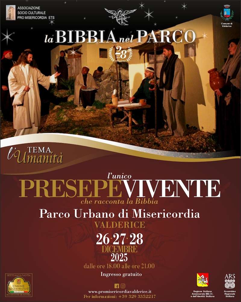 L’evento è curato dall’Associazione Pro Misericordia, con il patrocinio del Comune di Valderice e dell’Assemblea Regionale Siciliana, e vede la collaborazione delle parrocchie Maria SS. della Misericordia, Cristo Re e dell’Unione Maestranze, grande novità di questa edizione. Saranno oltre 50 i figuranti impegnati nella messa in scena, dando corpo a un racconto che attraversa i secoli e mette al centro l’Umanità e la sua storia di salvezza.