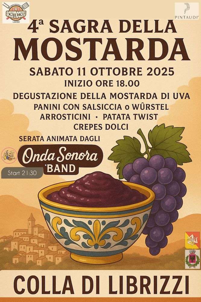 La mostarda di uva di Colla è un autentico piatto della tradizione culinaria siciliana, un vero tesoro della cucina contadina. Il nome “mostarda” ha origini latine, derivando da mustum ardens, che suggerisce l’idea di un mosto di vino reso piccante. Questa prelibatezza si distingue per il suo sapore unico e inconfondibile. La mostarda siciliana è un esempio perfetto di come nulla vada sprecato nella cucina tradizionale. La sua preparazione coinvolge l’uso del mosto d’uva, dolcificato con la cenere dei tralci d’uva e addensato con la farina. Questo processo culmina nella creazione di una sorta di budino, con un gusto dolce ma mai stucchevole, e soprattutto, caratterizzato da una genuinità che richiama alla mente le tradizioni antiche. La ricetta della mostarda d’uva è intrisa di storia e rievoca le suggestioni dell’autunno, con i suoi colori e i suoi sapori inebrianti. In Sicilia, la tradizione di preparare questo dolce è profondamente radicata, rivelando il talento della cucina “povera”, capace di trasformare ingredienti semplici in autentiche delizie gastronomiche. Durante la sagra i visitatori avranno l’occasione di assaporare la squisita mostarda d’uva appena preparata, simbolo autentico della tradizione locale. L’evento, però, non si limita alle degustazioni: si trasforma in una vera festa dello street food siciliano, con specialità irresistibili capaci di conquistare ogni palato. A rendere l’atmosfera ancora più coinvolgente ci penserà lo spettacolo musicale, per una giornata all’insegna del gusto e del divertimento.