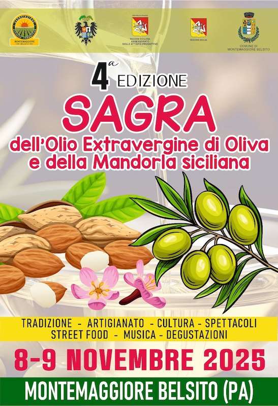 A Montemaggiore la Sagra dell’olio e della mandorla si svolgerà nelle giornate 8 e 9 novembre e sarà l’occasione per apprendere le tecniche di lavorazione dell’olio e delle mandorle proprio dagli operatori delle aziende locali. Nei giorni della sagra a Montemaggiore si potranno gustare le prelibatezze locali a base di mandorle ed assistere agli show cooking dove i piatti saranno preparati con tutti i prodotti tipici locali. Gli ospiti potranno visitare le chiese di Montemaggiore e il Museo civico e non mancheranno le escursioni naturalistiche, l’intrattenimento del gruppo folkloristico e gli spettacoli musicali in piazza.