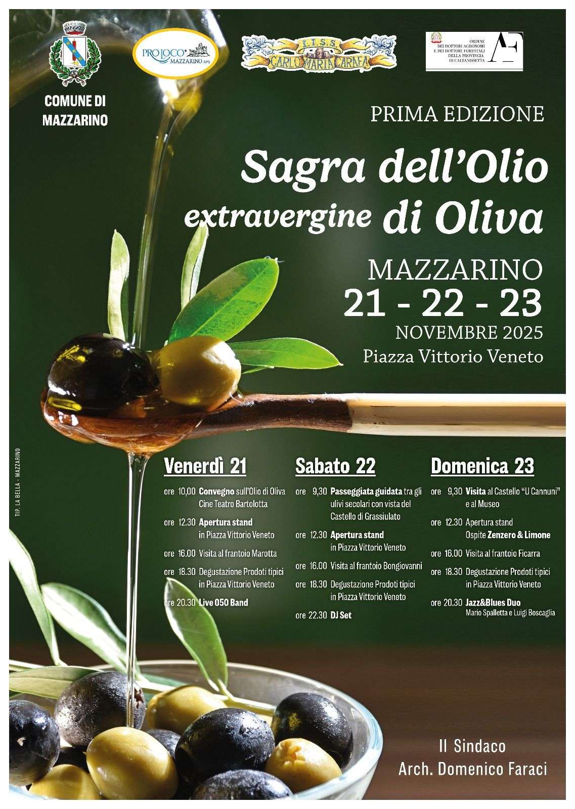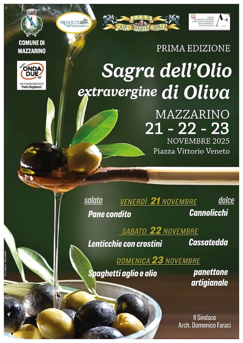 La Sagra dell’Olio di Mazzarino nasce dalla collaborazione tra Amministrazione Comunale, Pro Loco, produttori locali e l’Istituto Carafa, con i suoi indirizzi Agrario e Alberghiero, che parteciperanno attivamente alla manifestazione con dimostrazioni, degustazioni e momenti di approfondimento. L’obiettivo è quello di valorizzare il patrimonio agricolo e culturale del territorio, promuovendo il dialogo tra generazioni e la conoscenza dei prodotti locali. Tra gli stand sarà possibile assaporare l’olio nuovo in purezza o abbinato a specialità tipiche, mentre le strade del borgo si riempiranno di musica e intrattenimento.